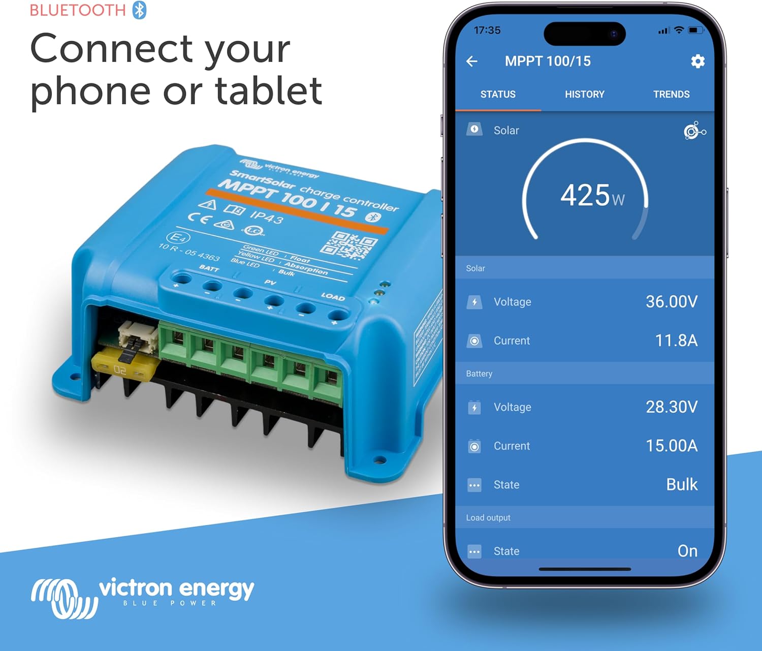 - CONNECTIVITY: The VictronConnect app lets you connect with your system to gain insight into real-time data and 30-day performance history. Easily configure devices with battery presets, change settings, update firmware and set alarms to tailor your system to your every need.