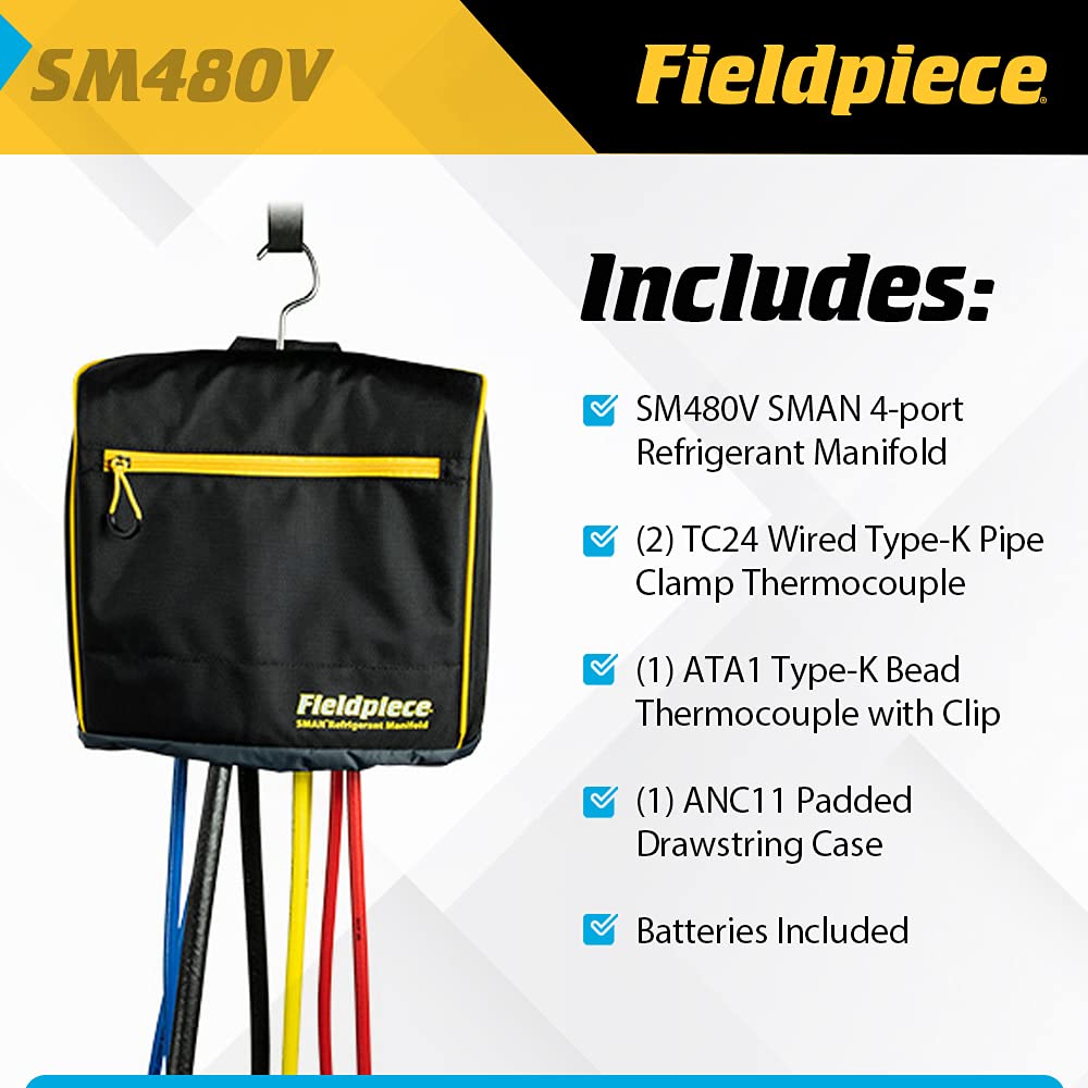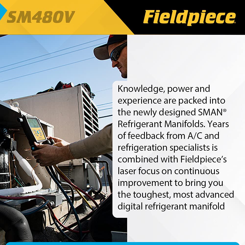 Fieldpiece SM482V Wireless 4-Port SMAN Refrigerant Manifold with Vacuum Gauge – Air Conditioning/Refrigerant Digital Gauges for HVAC & Refrigeration